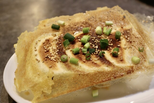 ○焼き餃子 でか。見た目大きい!パリッとした皮に めちゃくちゃ肉肉しくジューシーなあん。 餃子って野菜多めと肉多めの餡の2パターンあるけど こちらは食べたら肉汁じゅわっとする 肉多めの餃子。これは美味しい。