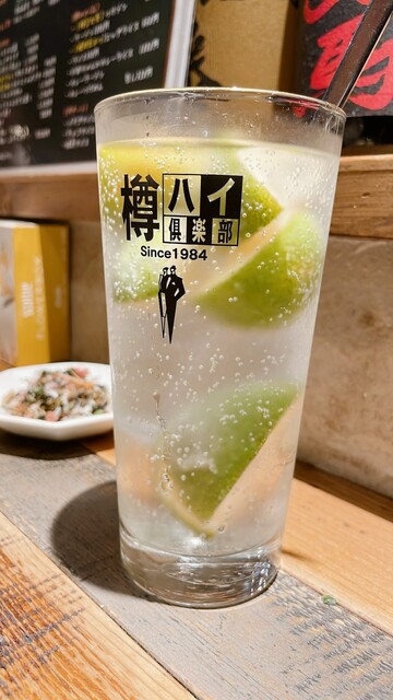 カウンター端を陣取りまして、乾杯っ! お高いBALLYの革ジャン着てきたことを 後悔するような、カジュアルな店内は ジャケットに匂い付いちゃうだろうなぁ~ って、雰囲気で、上着掛ける場所もない…