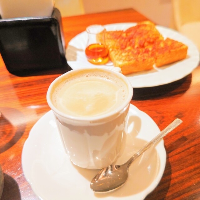 コーヒーは濃いめでおいしかったです(アメリカンでも濃かったのはご愛敬)。軽食も期待以上、文句ありません。 ただ、サービスは、家族経営なのかな?はっきり言って"それほど"なので(お客さんを「オタクは?」とか言っちゃう)、そういうのを気にしちゃう人は避けた方が無難です。 あと、一本、道を入った小さいビルの2階なんで、よく言えば静か、悪く言えば雰囲気、ちょっと暗いかも。 今時珍しく、タ... |