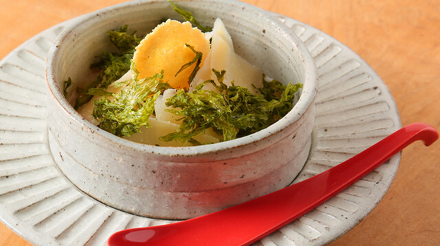 コースのラインナップをみてわかると思いますが「隙がない」という言葉がぴったりでしょうか。 全部美味すぎました。。 その中でも1番印象に残ったのは「名物 ちぃー蒸し」 餅米にお出汁をはって蒸したものに、パルミジャーノレッジャーノ、ミモレット、クリームチーズという3種のチーズ、白身魚とアワビの上にまぶされたカラスミと塩昆布が入った最強なお椀。 これを軽く混ぜながら頂くのですが、かき混ぜている段階からチーズの香りがすんごい。。味は色々交わりすぎてもうよくわからなかったのですが、とりあえずうまい!