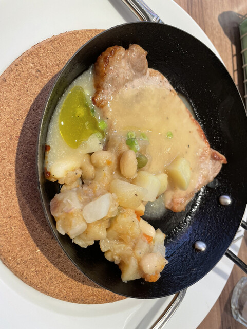 パスタは黒鯛のオイルスパゲティ。見栄えはイマイチだけど、火の通りも塩気がちょうど良く、美味しい。黒鯛もパサついていなくて、ホロホロっとたべやすい。