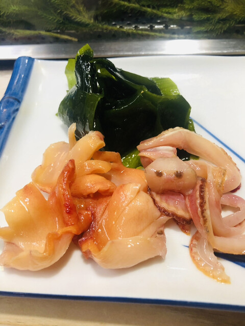 カウンターの手前に陣取り、冷蔵ケースをざっと一瞥。ネタの少なさが気になりましたが、ごろっとした大玉を見つけます。