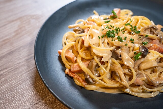 パスタは、わがままを言って、 一番人気の味噌クリームパスタと、 ペペロンチーノを両方オーダー。