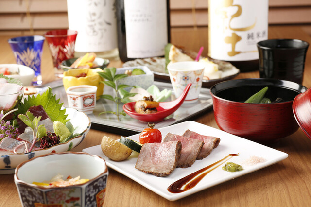 | 火曜日18時ごろ、8名で利用。 火曜日にもかかわらず店内はかなり混みあっていました。 お席は基本4人掛けのボックスソファー席。 仕切られている配置がいいなと思いました。 8名で伺ったので真ん中にあるのれん?で区切った大きなテーブル席でした。 このお席はちょっと周りに囲まれていて落ち着かない感じ。笑 日本酒が8種類ほどと、ビールなどもある飲み放題付きのコースを利用しました。 日本酒たくさん飲みました。 どれも美味しい!飲み放題メニュー以外にも日本酒がたくさん置いてあったので目移りしました…次は飲み放題じゃなくても伺いたい。 コースの料理は和食の繊細なものでした。 大皿ではなく、一人一人にしっかり分けられたものが来るので、会食などにぴったりだと思います。 料も多かったので大満足でした。そして和食なので日本酒にあう…。 お友達と、というよりは会社の人となどで使いやすいお店だと思います。 |