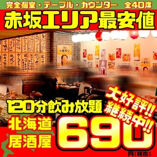 赤坂最安値飲み放題690円 ★北海道居酒屋★本場の味